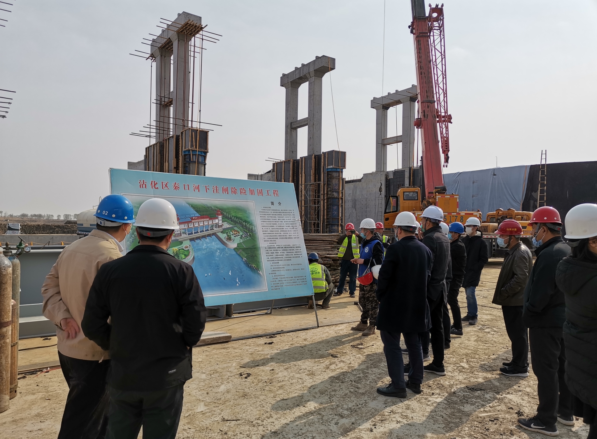 为指导和督促沾化区重点水利工程建设,确保工程按节点目标保质保量完成建设任务,同时配合好省、市重点水利工程质量和安全监督检查工作,4月1日,沾化区水利质监中心组织徒骇河坝上闸除险加固工程和秦口河下洼闸除险加固工程各参建单位开展在建水利工程质量和安全互检互查活动,由两个工程总监理工程师带队,设计、施工、检测、法人等参建单位相关人员组成工程互查小组。